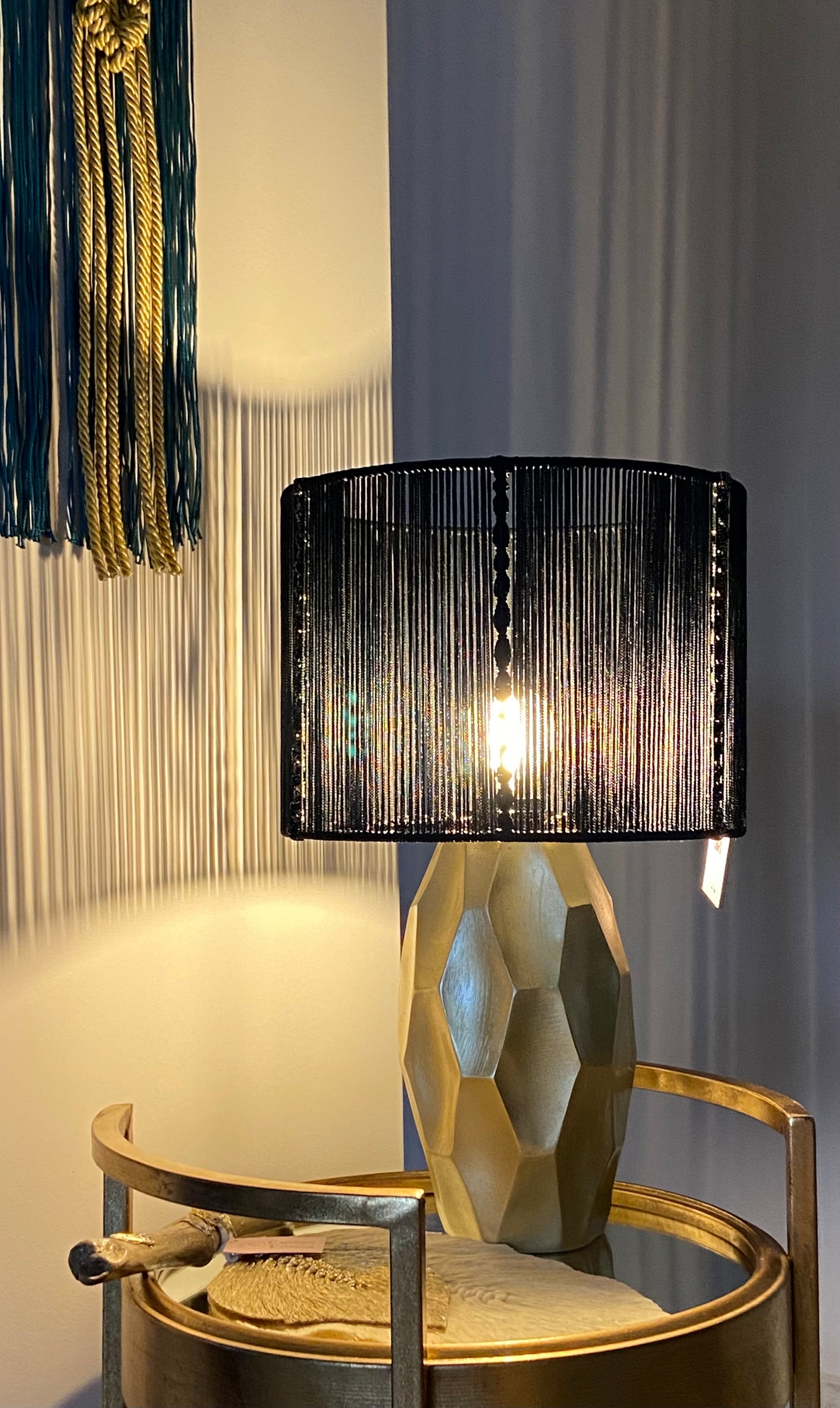 Λαμπατέρ Χρυσό με Μαύρο Μακραμέ Καπέλο