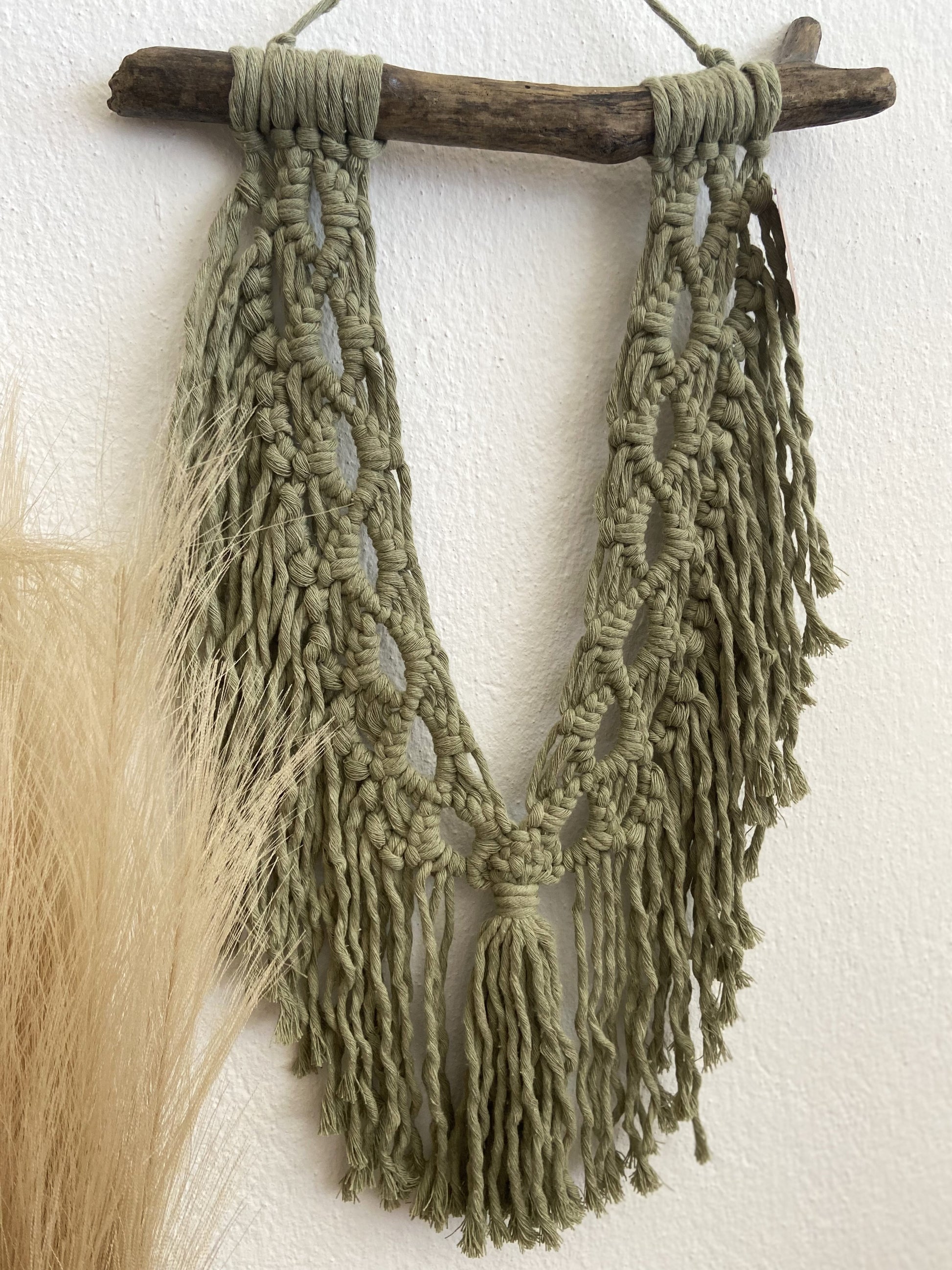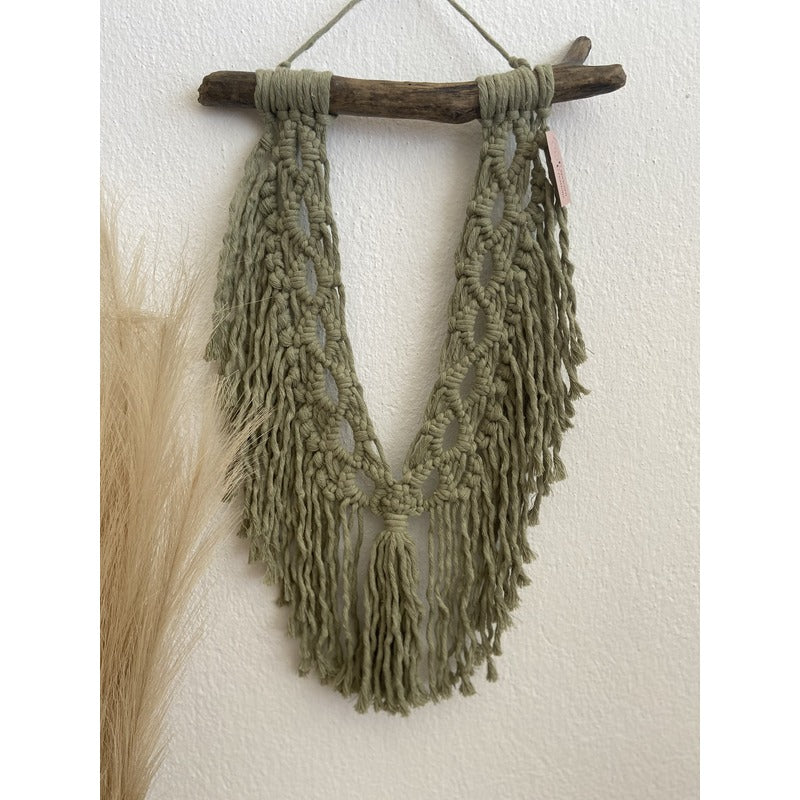 Χειροποίητο, διακοσμητικό τοίχου φτιαγμένο με την τεχνική του μακραμέ. Το φυσικό θαλασσόξυλο και οι περίτεχνοι μακραμέ κόμποι προσδίδουν μινιμαλιστική και ήρεμη διάθεση αλλά και μοντέρνα αισθητική στον χώρο σας.