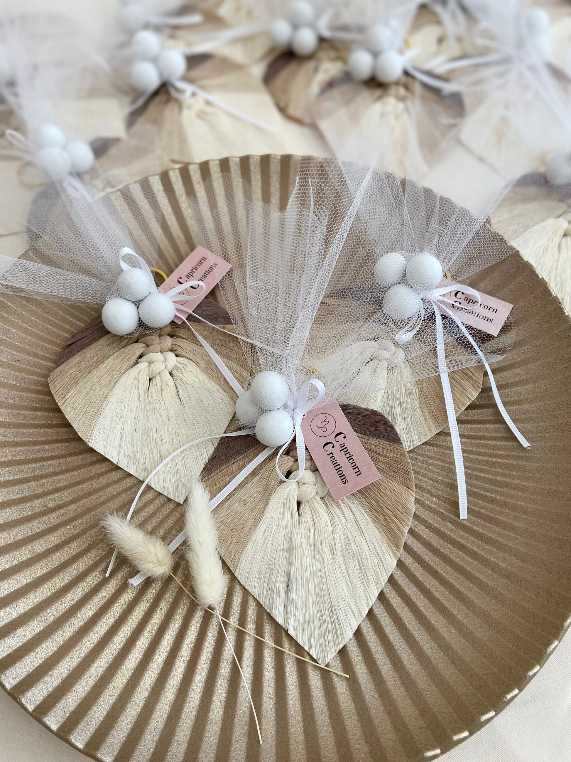 Μακραμέ φύλλο με την τεχνική ombre.Πρωτότυπη και εντυπωσιακή μπομπονιέρα μακραμέ σε σχήμα φύλλου μήκους 10 εκατοστών. Tα φύλλα μακραμέ τα κάνουμε με διπλό κολλάρισμα για να σκληραίνει το νήμα και να παραμένουν όμορφα και εντυπωσιακά.