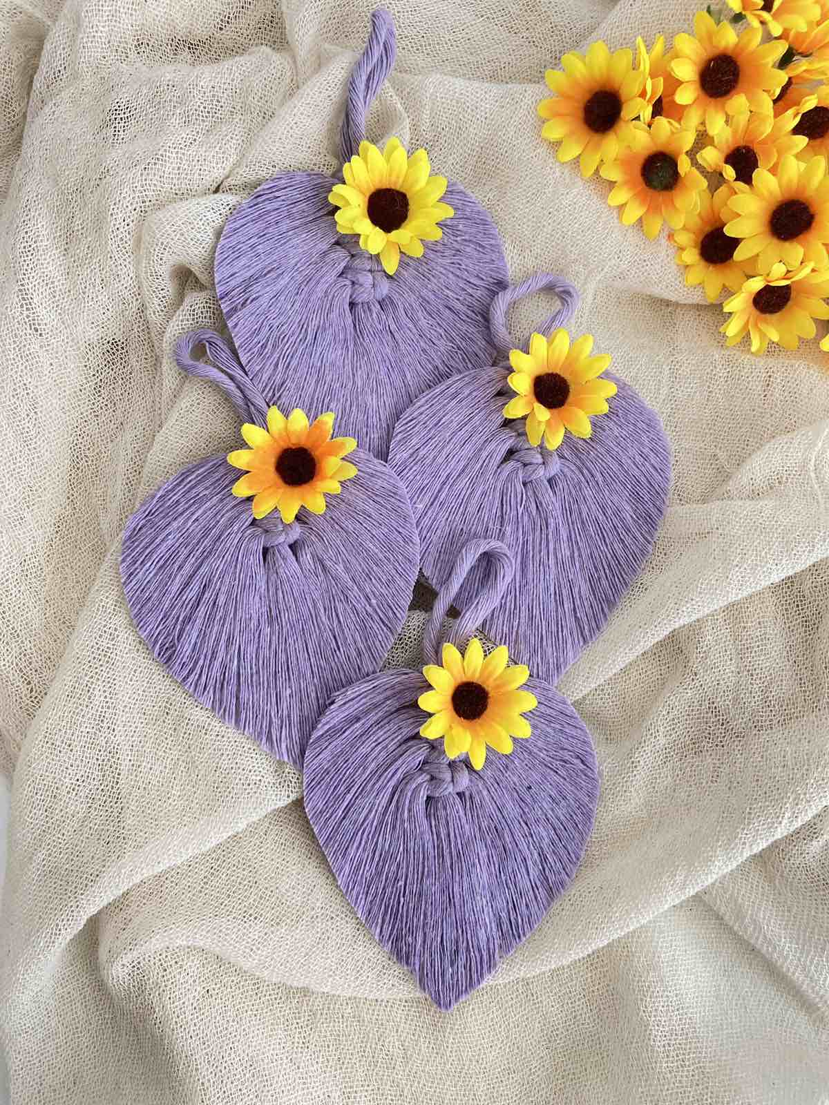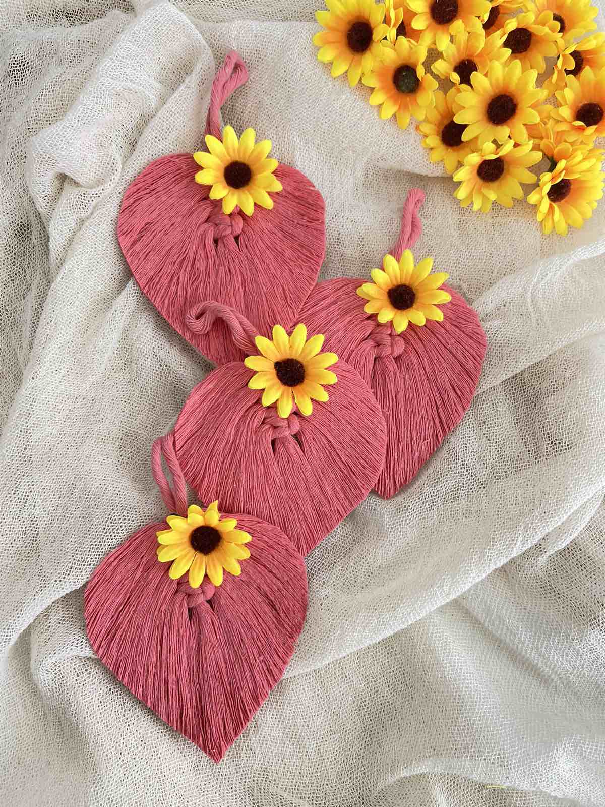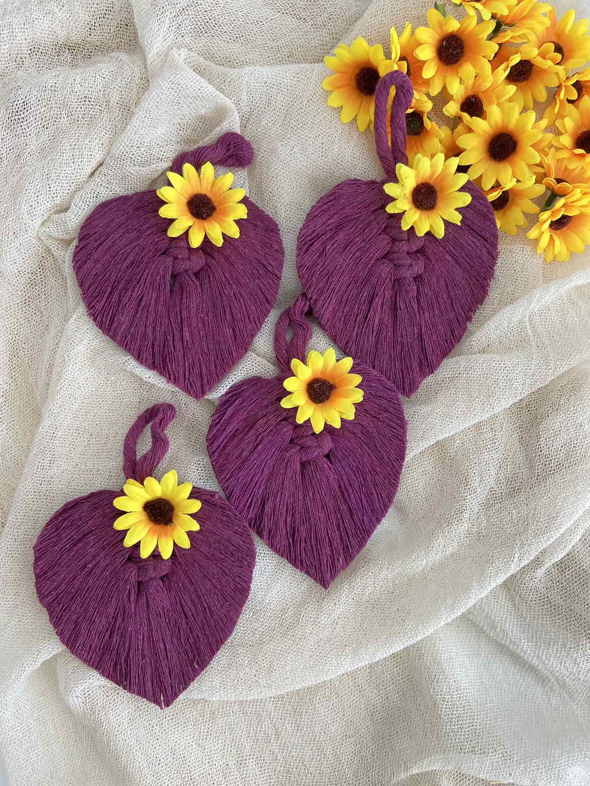 Μπομπονιέρα με θέμα τα λουλουδάκια και τα ζωηρά χρώματα., εμπνευσμένη από τα μακραμέ φύλλα. Μπορεί να γίνει είτε μπρελόκ με κρικάκι, είτε κρεμαστό με σκοινάκι και χαντρούλα.