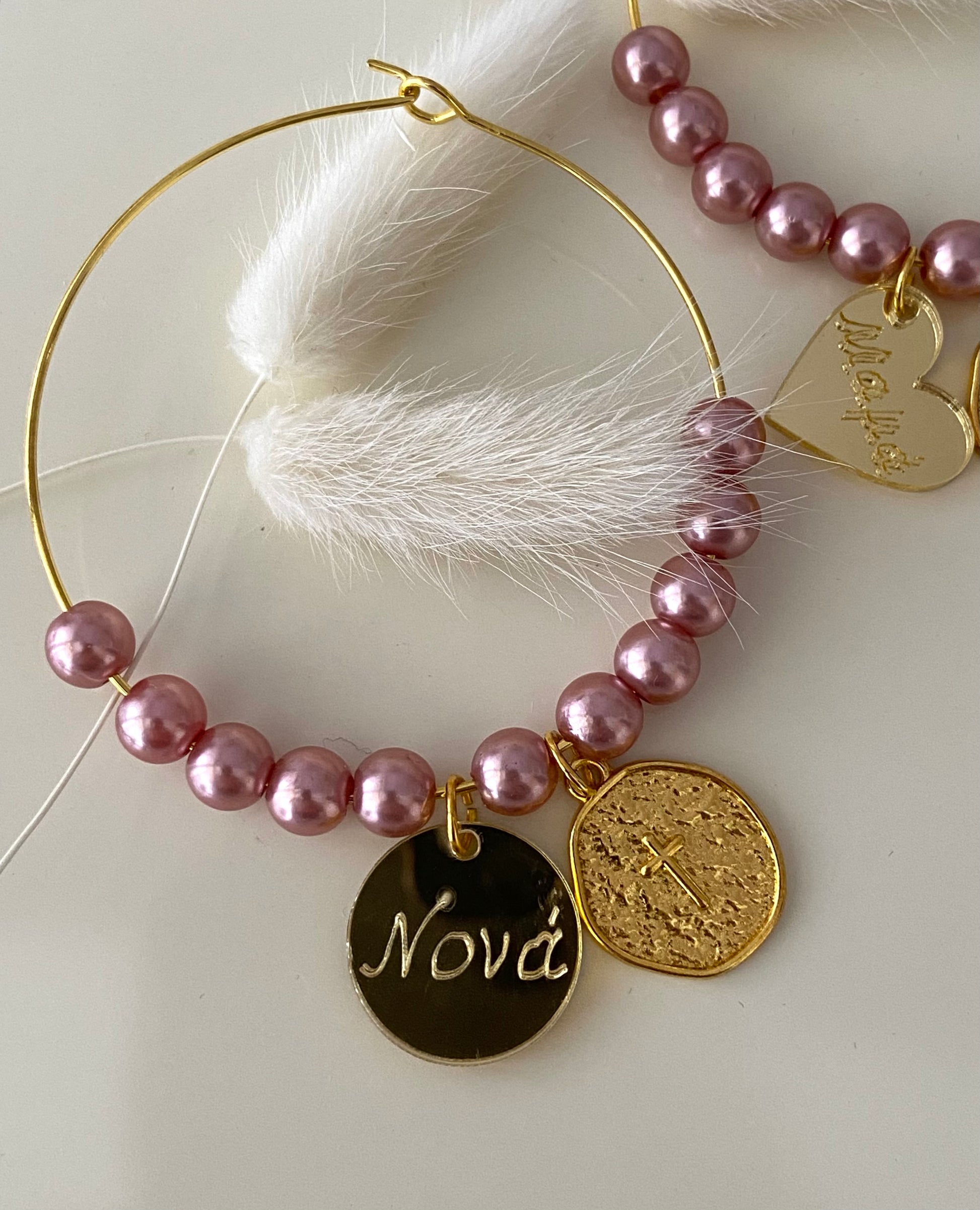 Βραχιόλι Λεπτή Βέργα με Πέρλες και Φλουρί